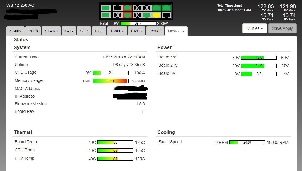 I think that memory use seems to creep up by 5-10 MB per day and then when it is around 128 MB, the switch is at risk of rebooting. I've tried to set up memory SNMP charting in PRTG but I don't think it's present in the Netonix MIB. Am I right in thinking it's therefore not possible?