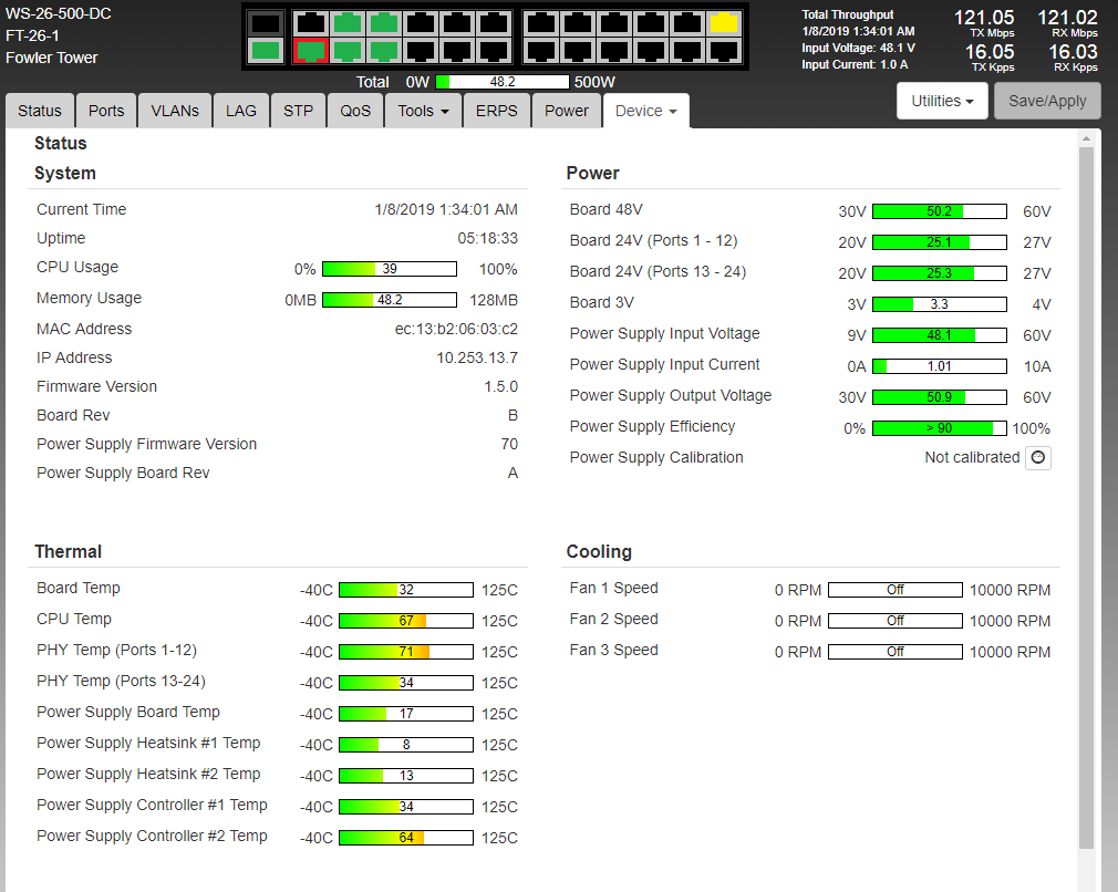 I have a switch that is having issues. It is recently deployed (last 2 months). I am not sure on the age of the switch as it has been on my shelf for a while. I have it powering one radio, the rest of the devices connected to it are powered separately (on their own fused feeds off of the same power supply). The only device going down is the switch, most recently last night. I think I am going to need to RMA the unit.