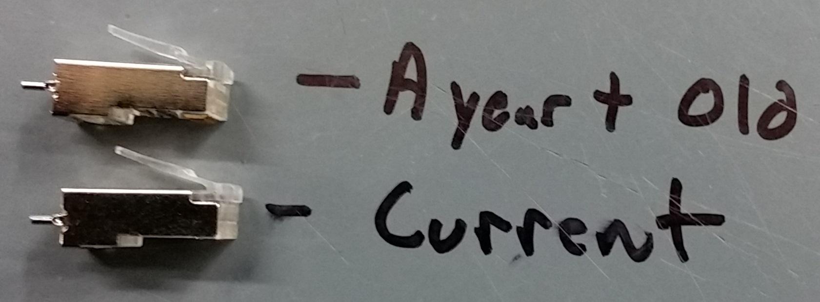 So the factory that installs the ESD shield on the RJ45 ENDs changed suppliers of the RJ45 plastic ends for that order as the other plastic ENDs were in short supply.