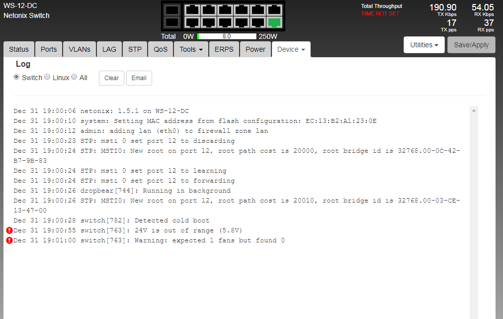 I recently purchased a WS-12-DC and used it only for testing and configuration. But after three days of testing where he was always on one morning I found these errors in the log.