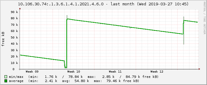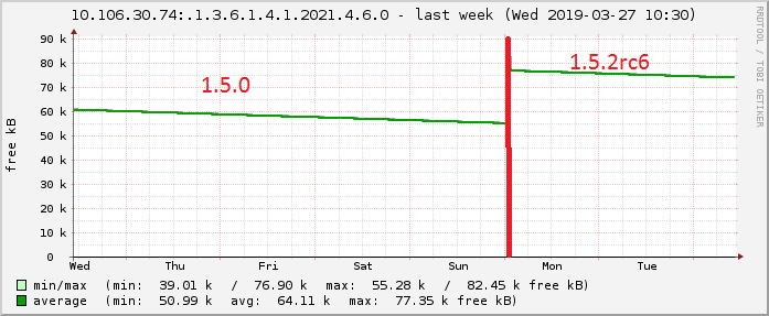 If that is the case then it is still within tolerance. There are many different service's running that cause memory to fluctuate. If it goes above 80MB (or from your NMS point of view, if the memory free goes to less than 48 MB ) Then we still might be looking at a leak.