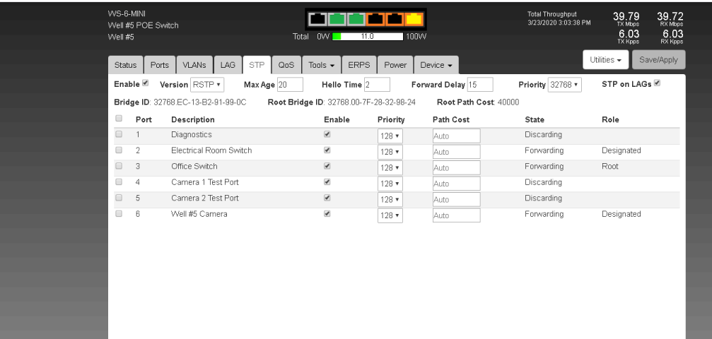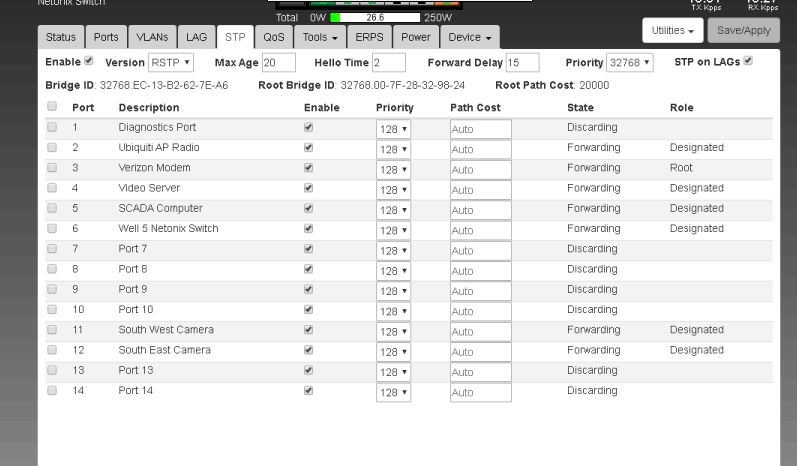 I would like to know whats the best configuration for Netonix switches that are all linked together? Do I need STP enabled on switches that are connected directly to each other? I attached some of the logs that show a lot of STP activity and I do see disconnection from time to time. Is this normal? Is there a possibility that the Netonix switches are blocking port 502? For some reason, I can't read that port anymore from the office computer but when I connect to the device locally it reads fine. Sometimes we have to cycle the power on the switch and we're able to read port 502 again. Any thoughts?