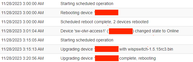 We had a WS-12-250-DC that was on firmware version 1.5.14 (Board revision F). Using the Netonix Manager, we scheduled a reboot and then a firmware upgrade to 1.5.15rc3. Switch rebooted fine, then proceeded to upgrade fine. After post-upgrade reboot, the switch disappeared.