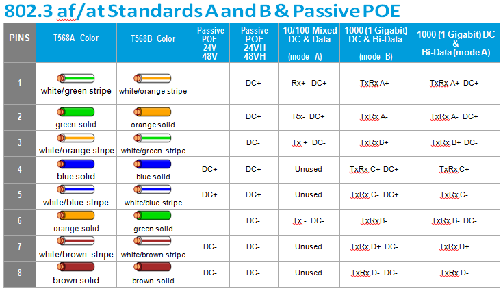 the ePMP POE is PIN (3,6)(4,5): +56V , PIN (1,2)(7,8): DC Return